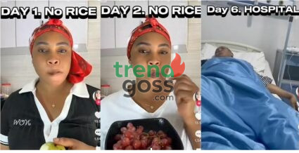 A young Nigerian woman, Doreen Osugo, has reportedly been hospitalized after attempting a “no rice challenge,” where she survived for six days primarily on fruits.